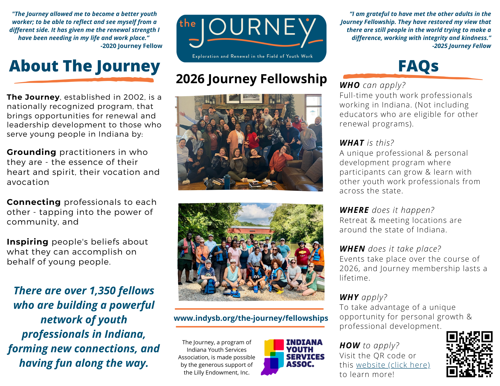 The Journey is a fellowship program devoted to the personal and professional development of youth workers in Indiana and beyond.